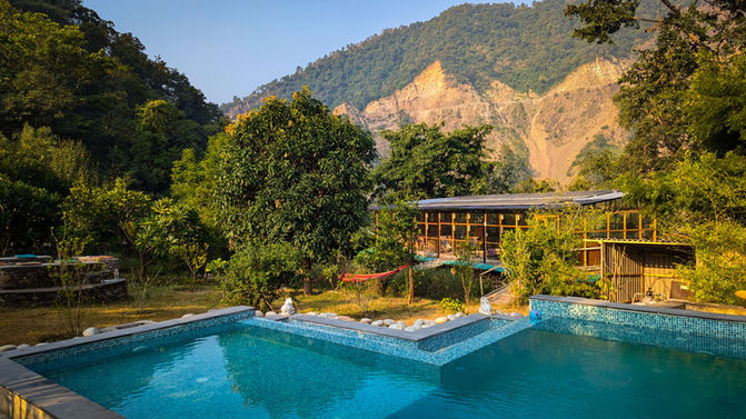 Perched on a ridge right next to the river Ganga and in the midst of a foothill forest, Hushstay x Aashraya is a hideaway like no other. The sweeping, turquoise river view is the star attraction of this place, a visual feast laid out from every other corner of this hideout. A 45km drive from Rishikesh and a three-kilometre hike gets you to this exclusive retreat, rewarding you with paradise upon arrival.