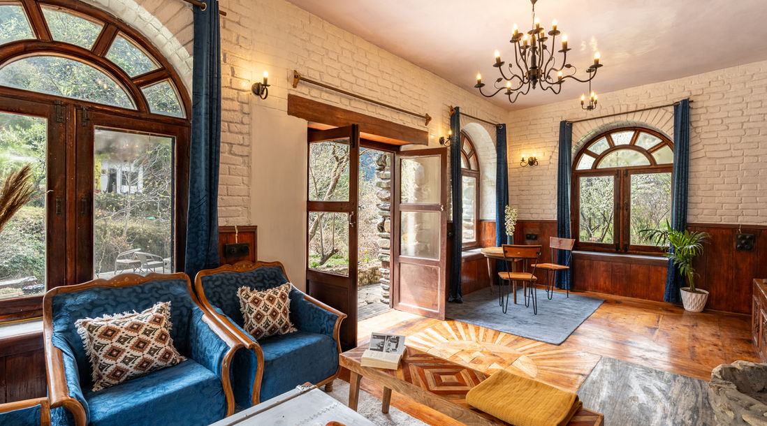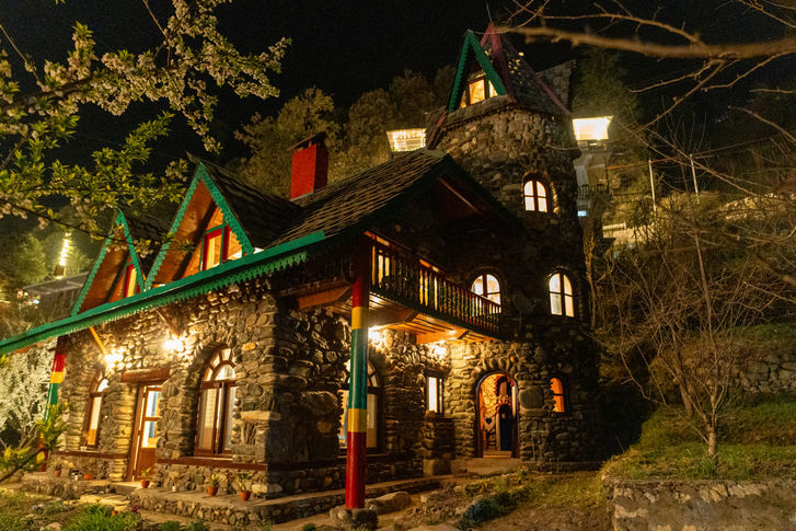 It is here, just along the Jibhi river, that Hushstay x Glenbrook Castle reveals itself - a unique 03-bedroom Riverside Castle that has remained quietly hidden in plain sight for over three decades. Built over 40 years ago by a Dutch-Indian couple, the home sits magically amidst peach, plum, and apricot trees.