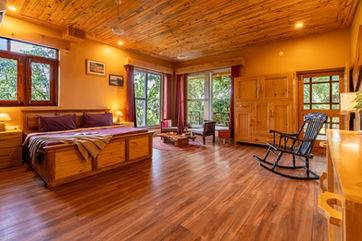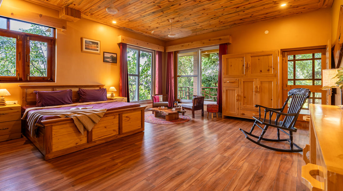 The second called, The Blue Rhapsody, carries a rustic yet vibrant energy. With hints of blue woven into its décor, it creates a calming atmosphere, perfectly complemented by views of nature spilling in from the balcony.
