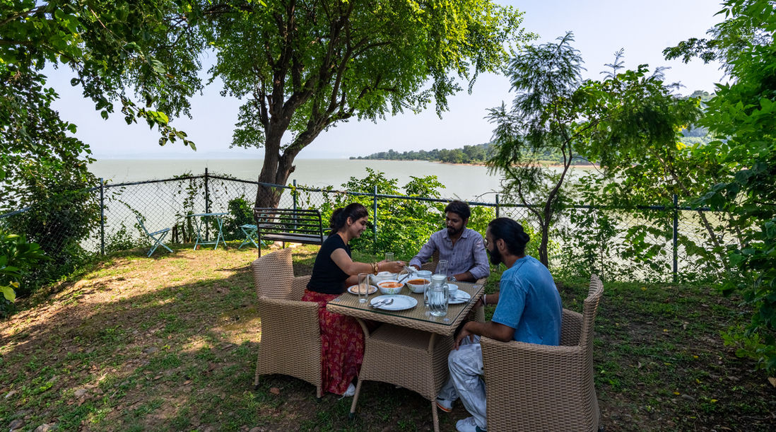 For those who love the land as much as the water, a stroll through Landhiara village opens up to blooming orchards, winding forest paths, and glimpses of everyday Himachali life. As the sun dips behind the Dhauladhars, evenings transform into experiences of their own—bonfires crackling under the stars, a lakeside barbecue, or a candlelit dinner by the water’s edge.