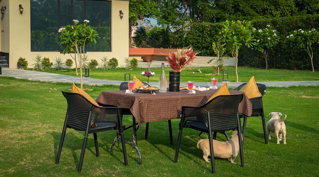 “We took our kids for a quick break from the city, and they absolutely loved it. They played hide-and-seek in the garden, watched peacocks, and spent hours splashing in the pool. For us, it was about slowing down—long meals in the dining area, board games, and sitting outside as the sun went down. It really felt like countryside living, just an hour from Gurgaon. The best part is how private and quiet it is—we had the entire place to ourselves.”
